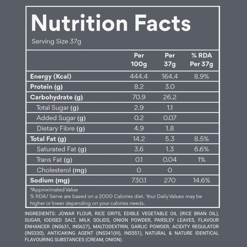 Jowar Puffs Cream & Onion a crunchy delight made from one of India’s most nutritious ancient grains.